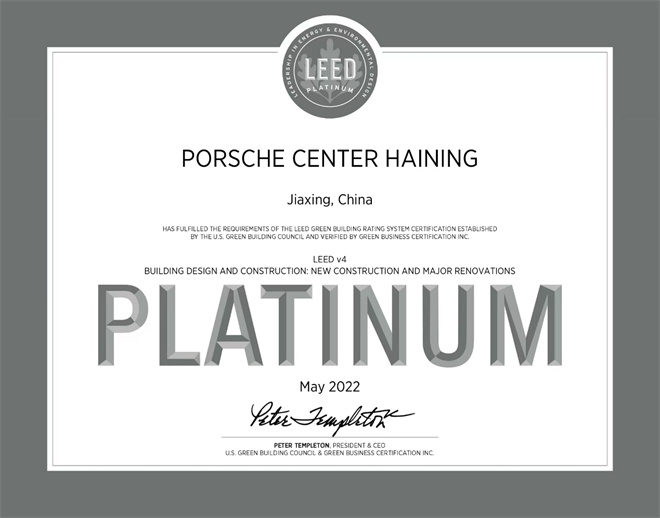 海宁保时捷中心荣获绿色建筑LEED铂金级认证