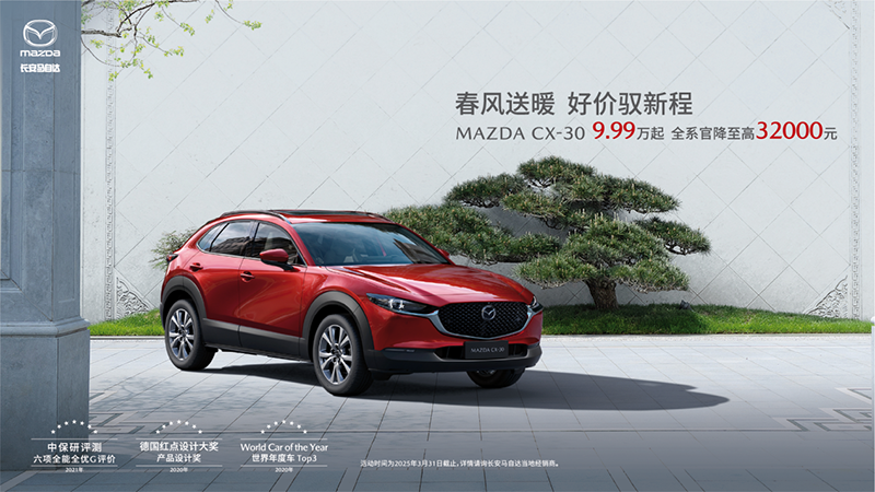 MAZDA CX-30:全系起售价9.99万起,至高优惠32,000元